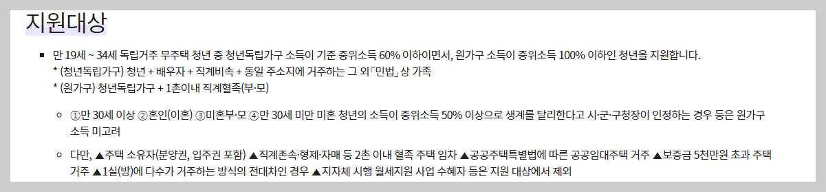 • 지자체 시행 월세 지원 사업 수혜자 제외