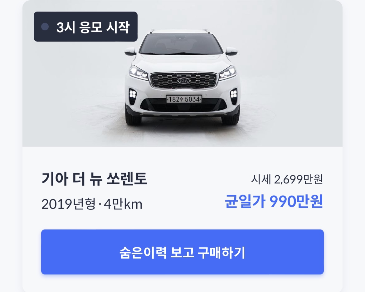 지난 8월 숨은 이력 찾기 런칭 이벤트로 선착순 단 한 분씩에게 총 9대의 차량을 2500만 원가량의 금액으로 990만 원에 판매하였는데요.
